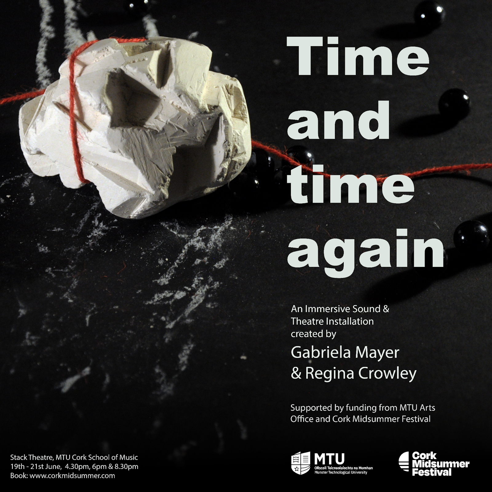 Time and Time Again is supported by funding from MTU Arts Office “Create Le Chéile” Project Award which has a particular focus on developing bold, dynamic, interdisciplinary, projects that celebrate MTU as an arts rich technological University and that connect MTU with arts and culture organisations and communities across the Southwest region. It is exciting to partner with the Cork Midsummer Festival to bring this new work created by MTU staff, alumni and international collaborators to audiences as part of this years festival programme. Sarah C. Morey, MTU Arts Officer.